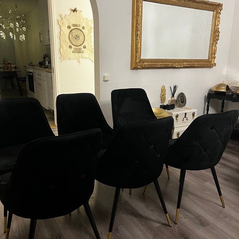 Säljer fyra svarta, klassiska designstolar ”Cobra” från Källemo. Svartlackerad ask. Stålben. Bruksslitge i form av små märken på lite olika ställen och även märke från stolsdynan mitt på sitsen. Kan behövas målas om. Annars överlag fina och stabila! Stapelbara. Sköna att sitta på och pryder verkligen sin plats!
