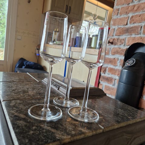 Totalt 10 vinglas och 12 champagneglas.