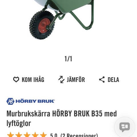 Hörby Bruk B35 murbrukskärra i grön färg. Modellen är avsedd för transport av murbruk och annat byggmaterial. Kärran har en djup korg och ett hjul fram, med två handtag för enkel manövrering. Max last enligt märkning är 200 kg. Passar för användning vid bygg- och renoveringsarbeten samt andra tyngre transporter på arbetsplats eller i verkstad.