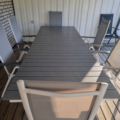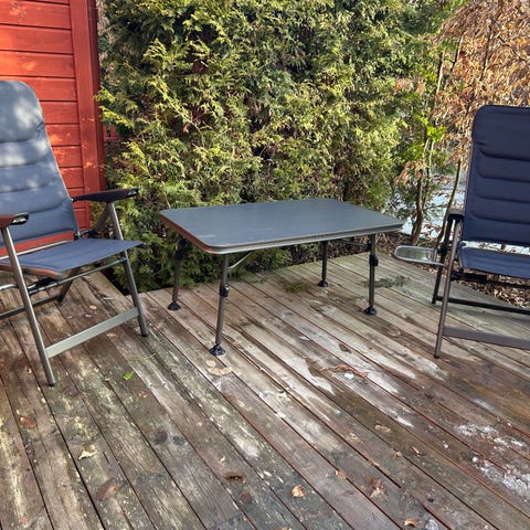 Enkelt att fälla ihop och upp, bordsbenen är individuellt justerbara för bekvämlighet.