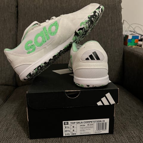 Nike fotbollsskor storlek 44,5 för inomhusbruk i gul färg med svart sula och detaljer. Passar för fotboll eller futsal på inomhusunderlag.