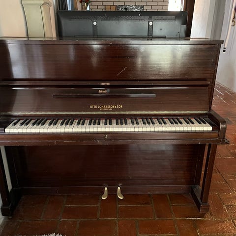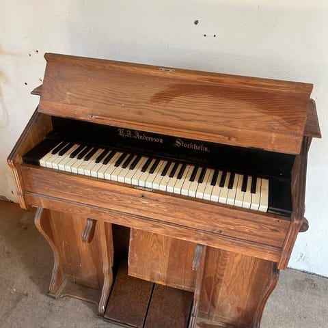 OBS tung och står på andra våningen så köparen kommer behöva ta av ben (det verkar lätt) och ha flera om bär ut. Inte spelad på sedan ca 1995 men allt verkar fungera.