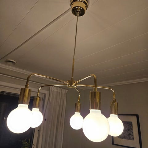 Taklampa mässing med fem lamphållare