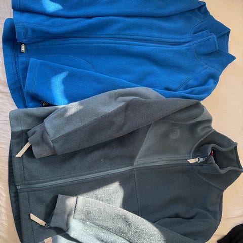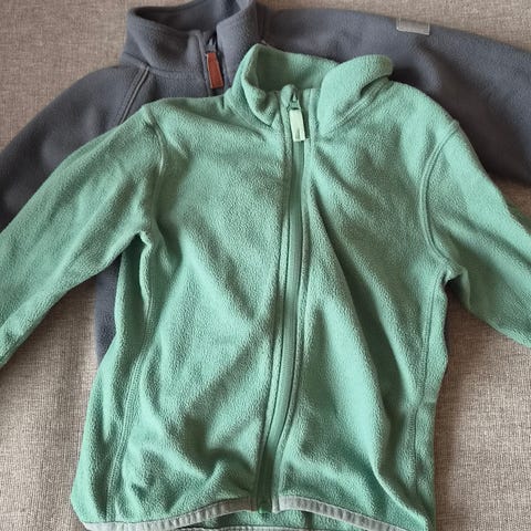 Den ena tröjan med huva 2 fickor o hel dragkedja. Den andra med krage o halv dragkedja