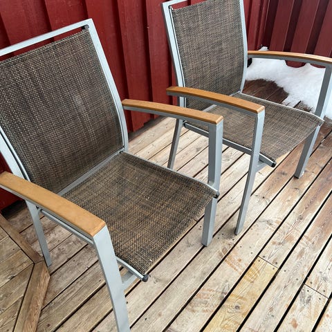 Säljer 8 stycken stolar för utomhusbruk från märket Fiber Sthlm. Köptes begagnade förra året och tanken var att göra vid dem (borsta och behandla) men endast hunnit borsta några av dem.