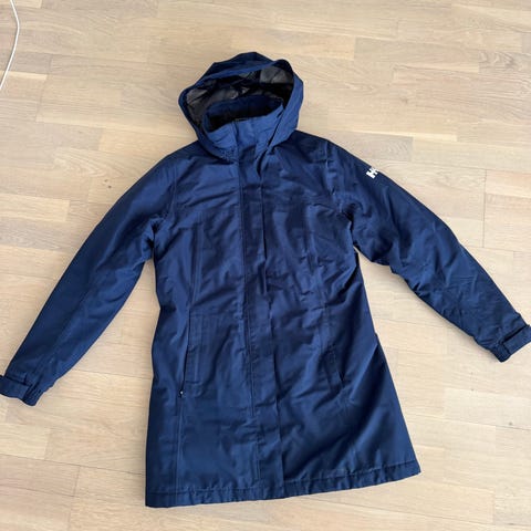 Knappt använd. Mörkblå. Det står om modellen här: https://www.hellyhansen.com/sv_se/w-aden-long-coat-62648