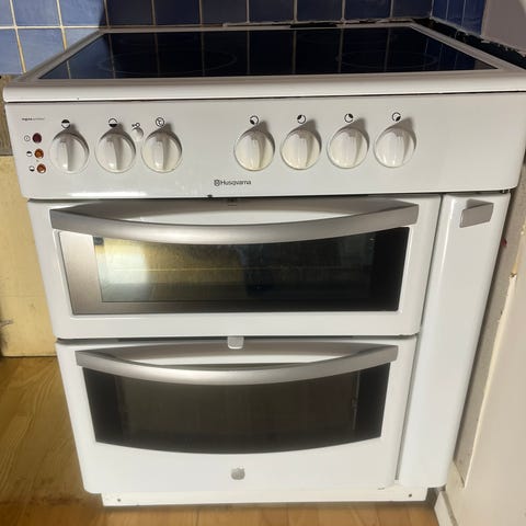 Glaskeramikspis med dubbla ugnar, där den undre ugnen är varmluft. Mycket bra skick