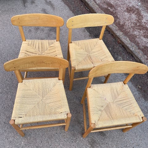 Fyra stycken J39-stolar, även känd som Folkestolen i bok. Alla 4 säljes tillsammans och finns att plocka upp i Vasastan.