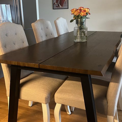 Bordet är runt och passar perfekt i kök eller mindre matplats.