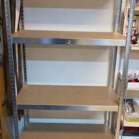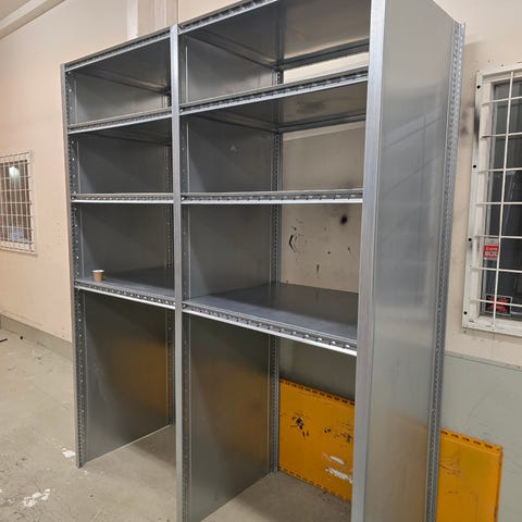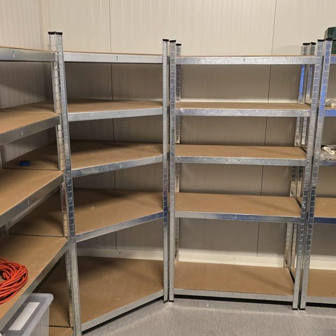 Säljer två stycken metallhylllor - perfekt för garage, förråd, källare eller verkstad.