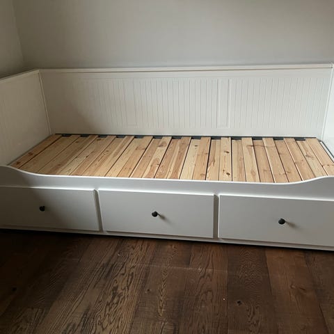 Kudde, täcke, filt, lakan och madrasser ingår inte i köpet – det är endast sängstommen som säljs.