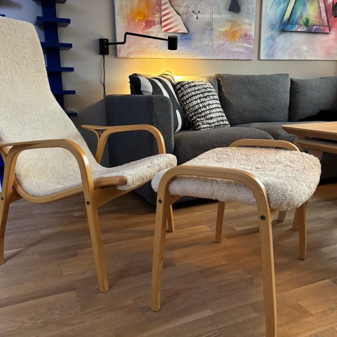 Fåtölj och fotpall IKEA modell Poäng.