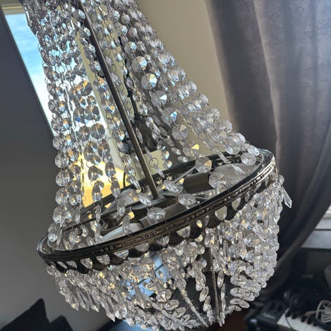 Takkrona som enkelt sätts upp i silver och akryl (ej äkta kristall). 57×36 cm
