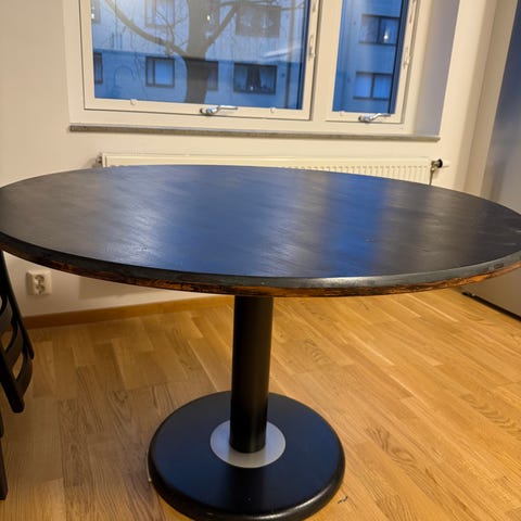 Runt bord med iläggsskiva i Ek samt 6 stolar
