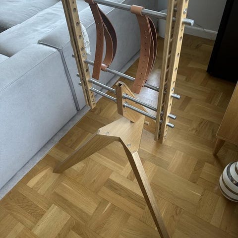 Ett snyggt tv-stativ i nyskick, aldrig använd. Perfekt i lägenheter där man inte vill skruva upp tv på väggen och om man vill variera TV i sovrum/vardagsrum. Storleken passade tyvärr inte i vårt hem.