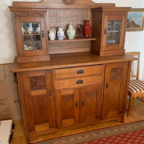Sideboard från jysk modell Agerskov. Bortskänkes. Dörrarna stängs med magneter och är svåra att stänga. (Se bild 6) Går kanske att bättre justera med skruvar.