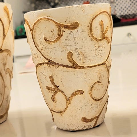 Vas keramik * bej & brun med blomma i rund form med dekorativt mönster