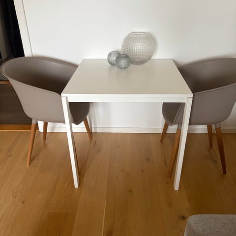 IKEA Leksvik bord i trä, målat i svart. Rektangulär bordsskiva med raka ben och enkel, stabil konstruktion. Passar som matbord, skrivbord eller arbetsbord i kök, vardagsrum eller arbetsrum. Bordet är tillverkat i massivt trä enligt märkning under skivan (modell Leksvik).