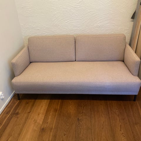 2-sits soffa med tygklädsel. Soffan görs enkelt om till en säng. Sits och ryggdynor i skum. Sovyta 126x195 cm. B160 x H78 x D69 cm