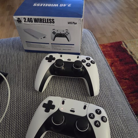 Hej det här är min spelkonsol som jag köpte online allting är perfekt och inga skador på den du kan ladda den med usb c ladd och det finns 500 roliga spel på den som Mario på den och den är snabb och smidig
