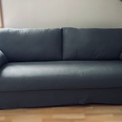 Vi säljer vårt sofföverdrag till Färlöv 3-sits soffa.