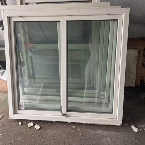 Ytterdörr med glasparti i vit färg. Dörren har en större glasruta i ena delen och en slät, vit panel i den andra delen. Passar som entrédörr eller altandörr där man vill ha ljusinsläpp. Materialet är troligen trä eller träkomposit med glasruta, exakta mått och specifikationer är okända och behöver mätas på plats.