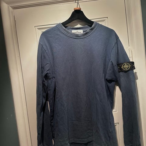 Stone Island tröja för herr i storlek L. Tröjan är beige och tillverkad i bomull. Modellen har rund halsringning och lång ärm med avtagbar Stone Island-logga på ärmen. Passar som vardagströja eller som ett extra lager vid svalare väder.