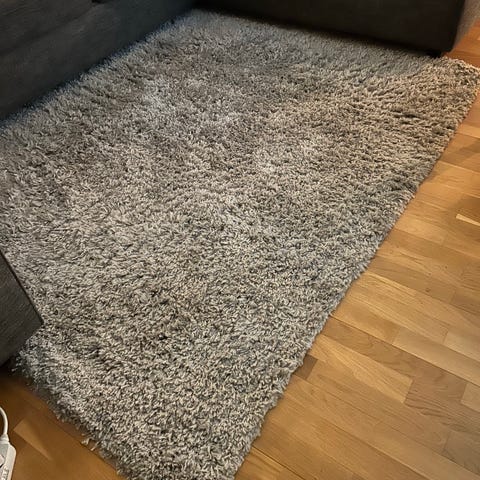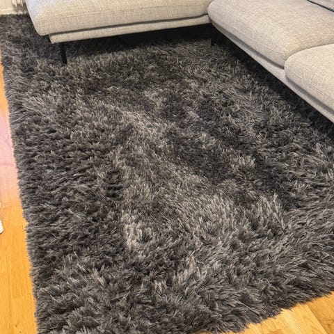 Mio Ventura ryamatta i storlek 140x200 cm. Mattan är mörkgrå och tillverkad i polyester med tät, mjuk lugg.