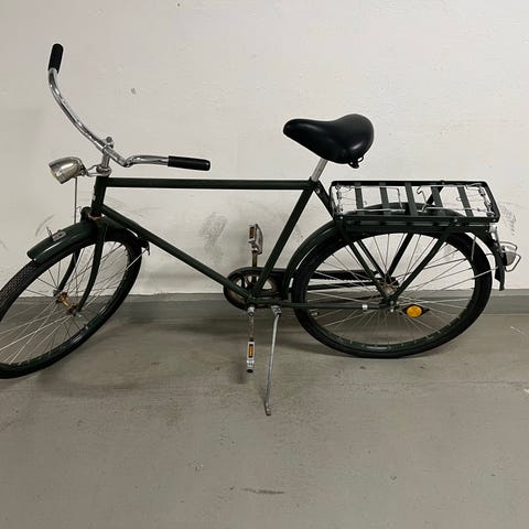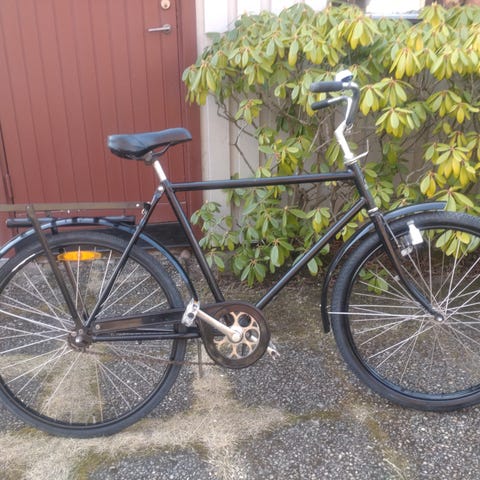 Monark herrcykel med 28" hjul. Fina däck fram och bak. Klassisk modell med upprätt körställning, kedjeskydd, skärmar fram och bak samt pakethållare. Utrustad med fotbroms bak och handbroms fram. Passar för vardagscykling och transporter i stadsmiljö. Lyse fram och bak. 2 nycklar.