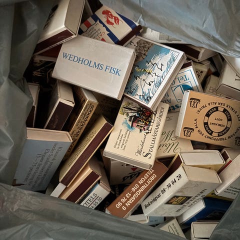 Tändstickor samlarobjekt ,vet ej hur gamla dom är. 31+19 cm