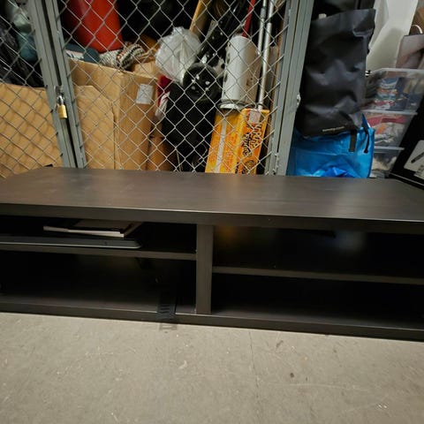 Bestå, svart/brun. 180x40x64, två lådor i mitten.