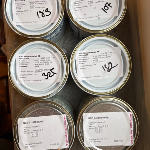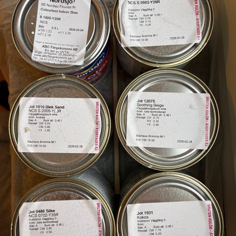 Är du som jag lite velig med att välja färg så går det åt en provburkar. Jag säljer mina nu när jag valt. Det är grå/greige toner i olika varianter. Vanligtvis kostar de 100kr styck