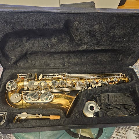 Altsax från välkända Jupiter i utmärkt skick. Komplett med väska och samtliga medföljande tillbehör.
