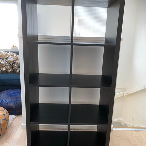 IKEA hylla med kubfack i brun färg. Hyllan har flera öppna fack i rutnät som lämpar sig för förvaring av böcker, lådor eller dekoration. Passar exempelvis i vardagsrum, sovrum eller kontor som förvaringsmöbel eller rumsavdelare. Tillverkad i träbaserat material med slät yta.