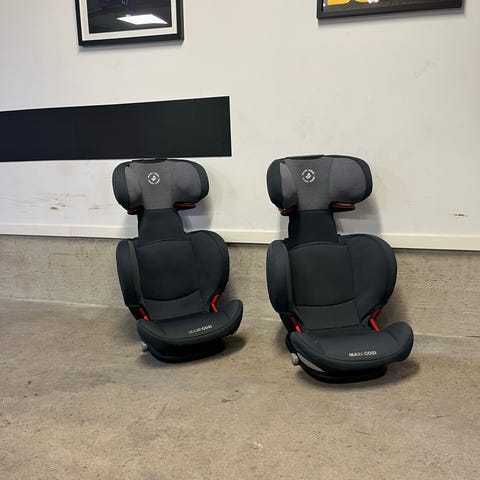 2 stycken Maxi-Cosi RodiFix bilbälteskudde för barn 15–36 kg. Kan användas med eller utan ISOFIX.. En stol är i Authentick Black och den andra är Nomad Black. Stolen är en framåtvänd bältesstol med hög rygg och justerbart nackstöd. Godkänd enligt ECE R44-04 för viktklass 15–36 kg. Färg i olika svarta/grå nyanser enligt bilderna. Sparsamt använda och säljs för 800 kr styck eller 1.500 kr för båda. Nypris ca 1400 kr / styck.