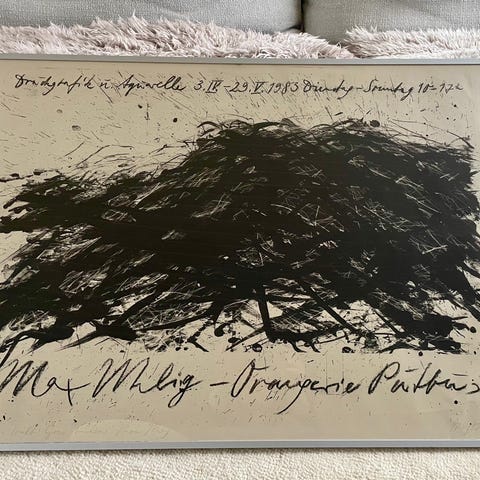 Tavla med motiv av hästar och vagnar, inramad i en grön och guldfärgad ram. Motivtext på tyska: Tavlorna har varit i min familjs hem sedan början av 1900 talet, har en vintage-stil och detaljerade illustrationer av hästar och ryttare. På den tredje är motivet ett tåg.