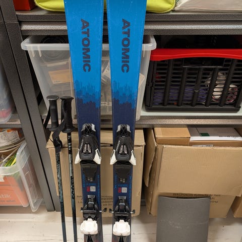 Atomic skidor, L 110cm samt stavar enl bilder. Vallade innan och under säsong.