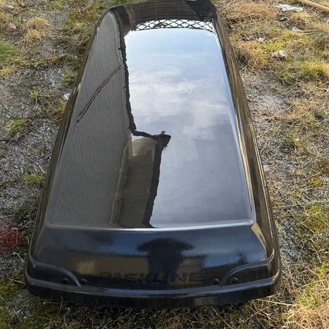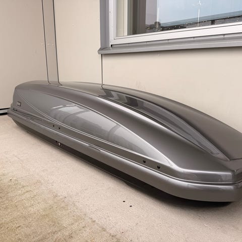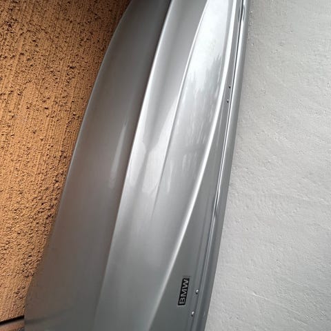 Takbox i svart färg av märket BMW men tillverkad av Thule, ca 10 år gammal och endast använts 1-2 ggr per år för skidsemester. Har suttit på en BMW X3 men passar naturligtvis många modeller och andra bilmärken, kompatibel med rätt takräcken. Takboxen är låsbar.