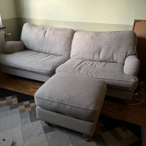 Grå soffgrupp i helt och fint skick. Sittdjup ca 58cm.