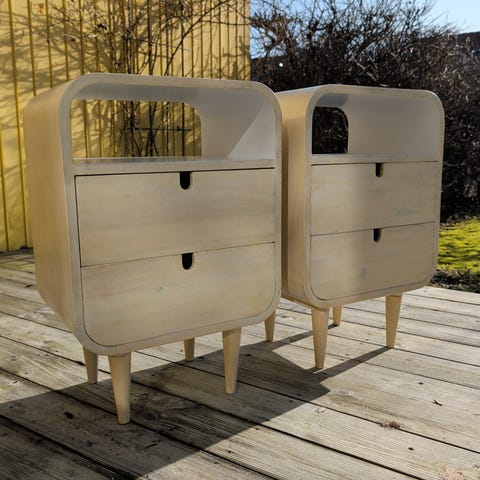 Se skick på bilder - ett ben på varje sängbord är även glappt.