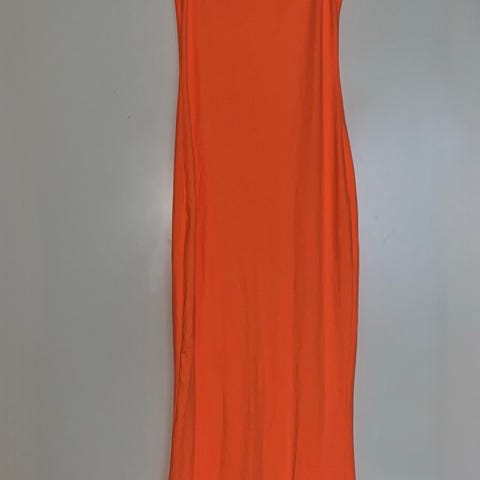 Shein sommarklänning för dam i storlek S. Klänningen är orange med mönster och tillverkad i polyester. Passar som lätt och tunn klänning under varmare väder eller till vardagsbruk.