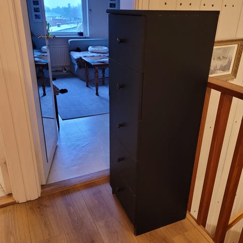 Faneret ovanpå är slitet och har släppt på sina ställen. Hämtas i Skarpnäck.