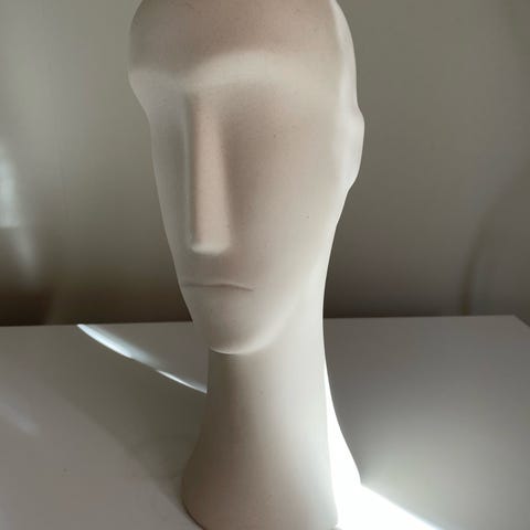 Byst, samtida i form av ett barnhuvud i konstmassa.