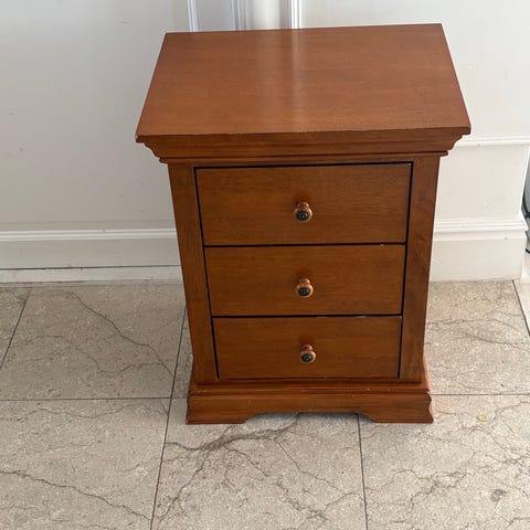 Säljer två sängbord i körsbärsträ. Ovansidorna är slitna, men i övrigt fint skick.