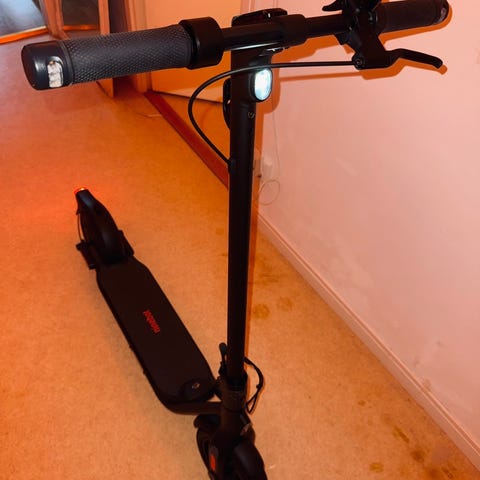 Elscooter i bra skick. Fungerar som den ska. Finns 3 olika hastighets lägen. I appen kan man ändra fler inställningar.