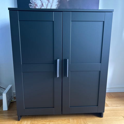 Ommålat Ikea skåp . Svart matt med äldre stil på knopparna.