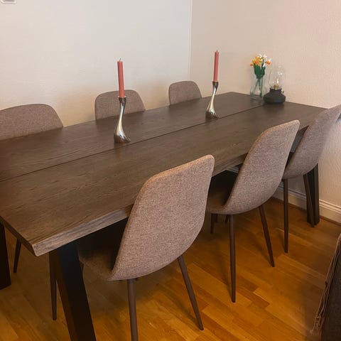 Fin och stabil matgrupp med 6 stolar i äkta läder.
