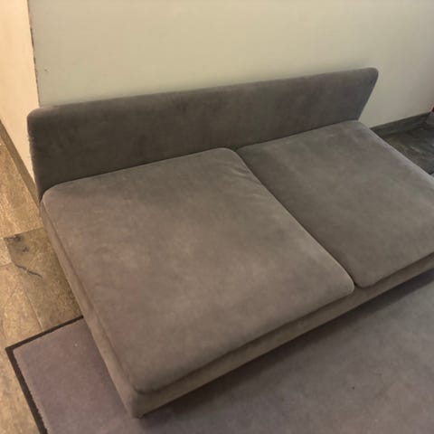 Stomme, dynor och kuddar är i bra skick och klädseln har inga skador eller permanenta fläckar.