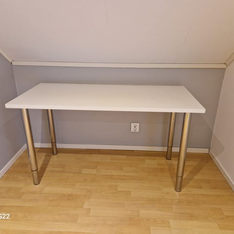 Bordskiva samt högra benet med lådorna är en del, det vänstra benet är löst och fästs under med vinkeljärn