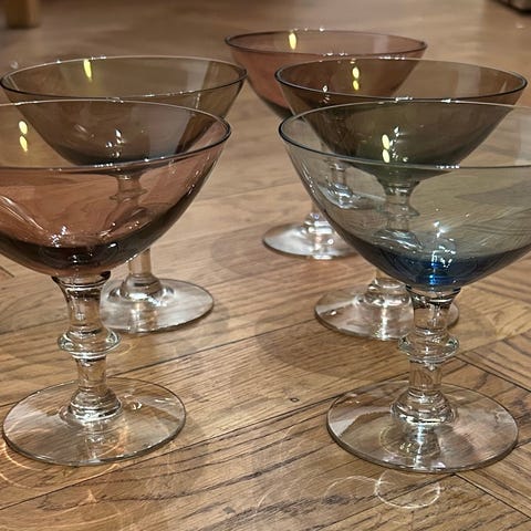 9st stycken dessertskålar / coupeglas i frostat glas från Johansfors glasbruk. ( En utan öra)